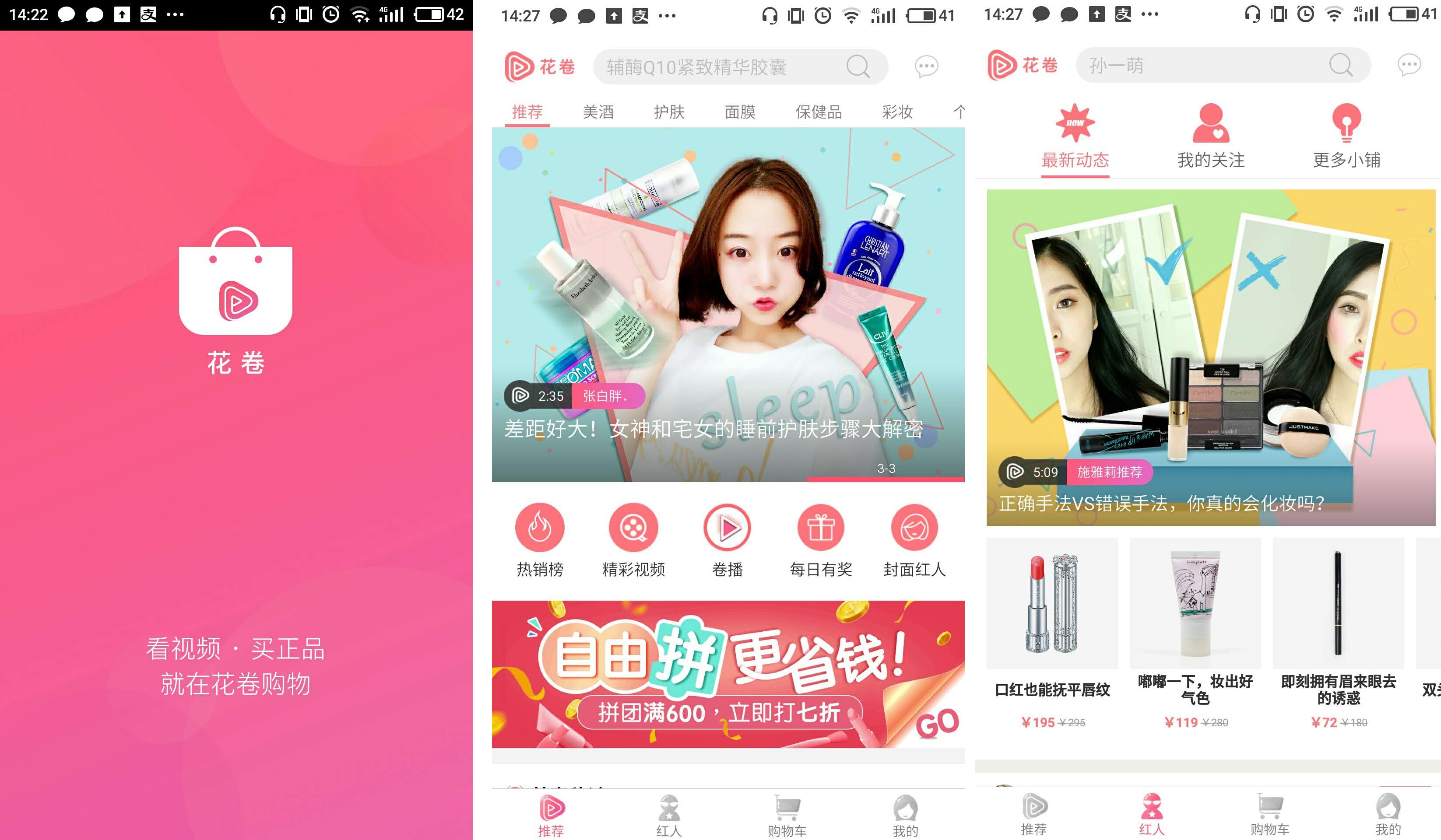 美妆网红导购的出现则一定程度上解决了这个问题,网红帮他们筛选出合适的品类,告诉她们怎么买、在哪里买,提升了的购买决策效率。花卷表示,超过50%用户在接触花卷前不会在线购买美妆类产品,而在花卷平台上,看完视频后成功转化的用户平均会购买3件商品,客单价在280元左右。