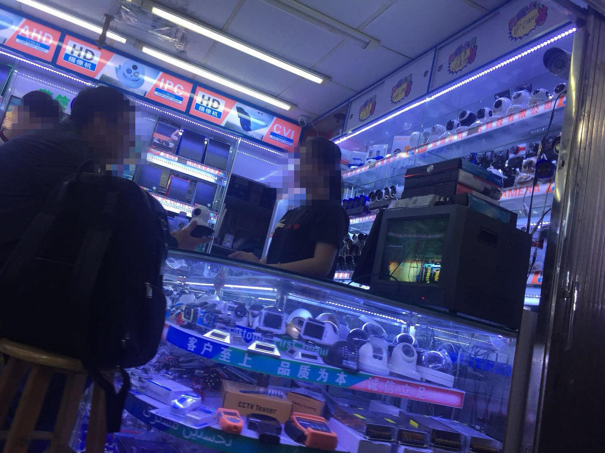 在围上来“兜售”隐藏摄像头和窃听器的人中,我们选择了其中一位中年妇女,跟着她来到所谓的“办公室”。