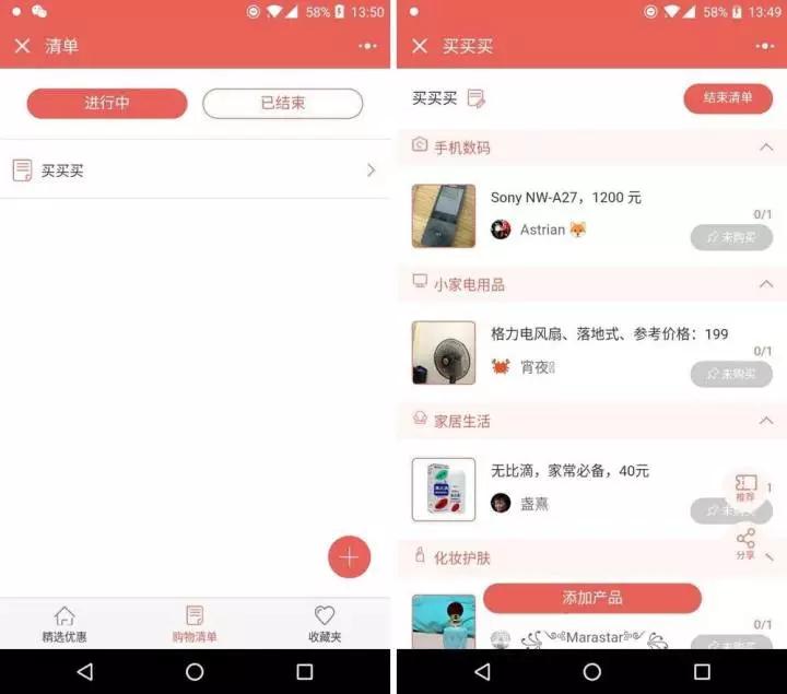 在「购物清单」板块中,你可以新建一个购物清单,并在清单中新建需要购买的产品。