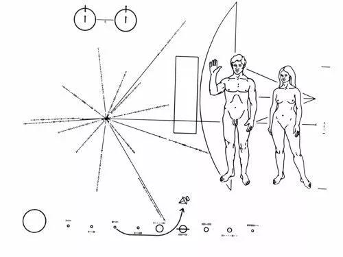 在20世纪70年代,飞向太阳系之外的“先驱者”号和“旅行者”号探测器上,都搭载了金属制成的人类名片,在名片上,人类以图画的形式表示出了太阳系、地球所在的位置、男人和女人的形象。
