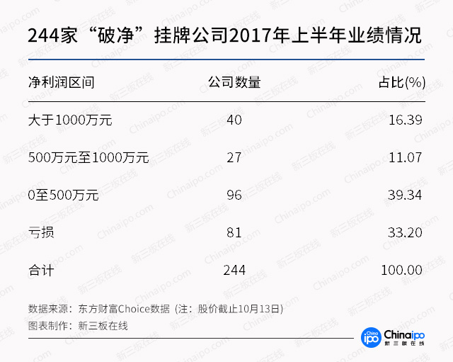 具体分析上述244家破净挂牌公司。新三板在线统计发现,今年上半年163家处于盈利状态,占比67%;其余81家亏损,占比33%。值得注意的是,4成“破净”挂牌公司,今年上半年净利润处于增长状态,其余6成“破净”公司净利润同比下滑。