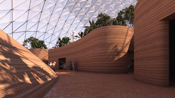 穹顶式建筑,3D打印沙墙,科幻感强烈