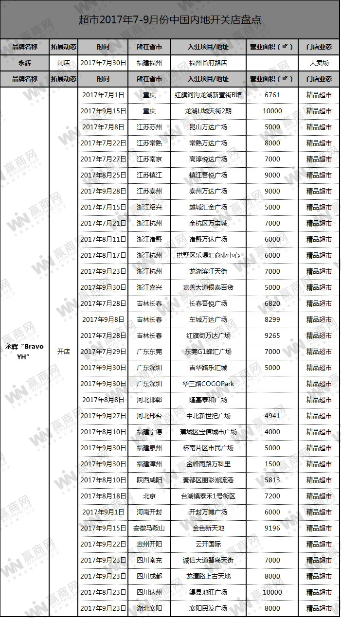 十大超市三季度开店78家、关店9家,开店永辉继续领跑