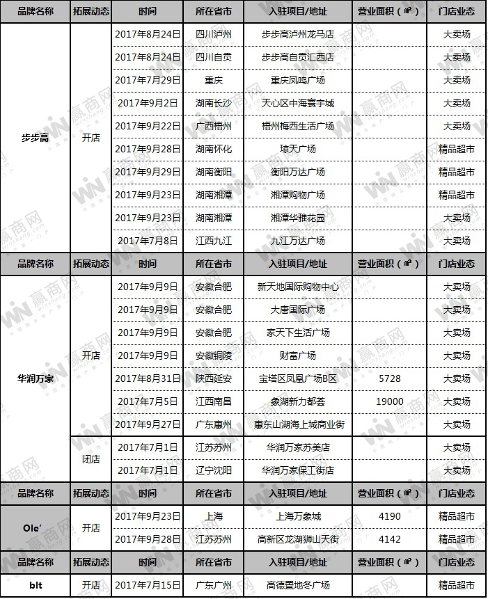 进入下半年,超市开店的步伐明显加快。据赢商网不完全统计,在第三季度,永辉、步步高、华润万家、物美、大润发、沃尔玛、家乐福、卜蜂莲花、永旺、百佳十大超市零售企业旗下的大卖场及精品超市业态共开店78家,其中永辉超市继续领跑。与此同时,也有超市传出闭店的消息,沃尔玛、华润万家、永辉第三季度共关闭了9家门店。