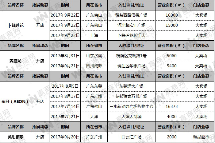 值得注意的是,在第三季度,有超市零售企业尝试开设紧凑型门店,如沃尔玛在武汉和昆明新开的2家门店便是紧凑型门店,营业面积约为6000㎡,缩小近40%(沃尔玛原有门店通常在1万㎡);沃尔玛大卖场中国业务总裁陈文渊也曾向媒体表示,沃尔玛中国每年将新增30-40家门店,其中紧凑型卖场比例会逐步上升。试水紧凑型门店的还有用永旺,它也于7月份在天津天河城新开了一家面积约4000㎡的门店。