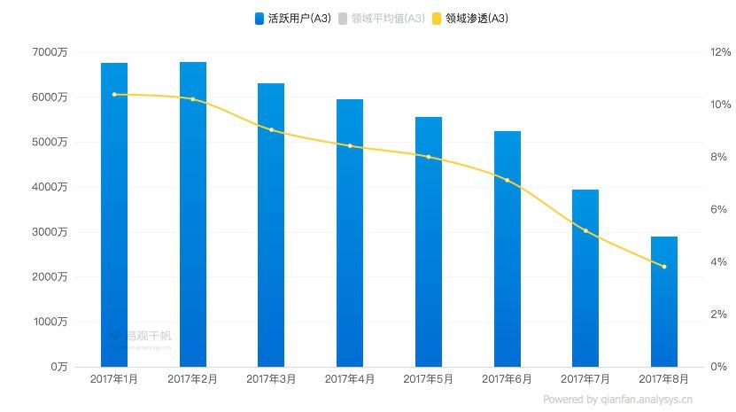另一位电视行业资深人士告诉懂懂笔记,资金紧缺今年引发了一系列问题,比如渠道商对乐视失去信心,上半年开始已经有大量的渠道转投其他品牌。另外资金缺乏导致乐视网不再购买独家内容,同时分销自制节目,那么乐视网已经不再有自己的特色,对用户影响较大。“乐视视频内容的匮乏,导至了用户流失。”朱大林告诉懂懂笔记。(下图为易观数据显示,乐视视频活跃用户持续下降)