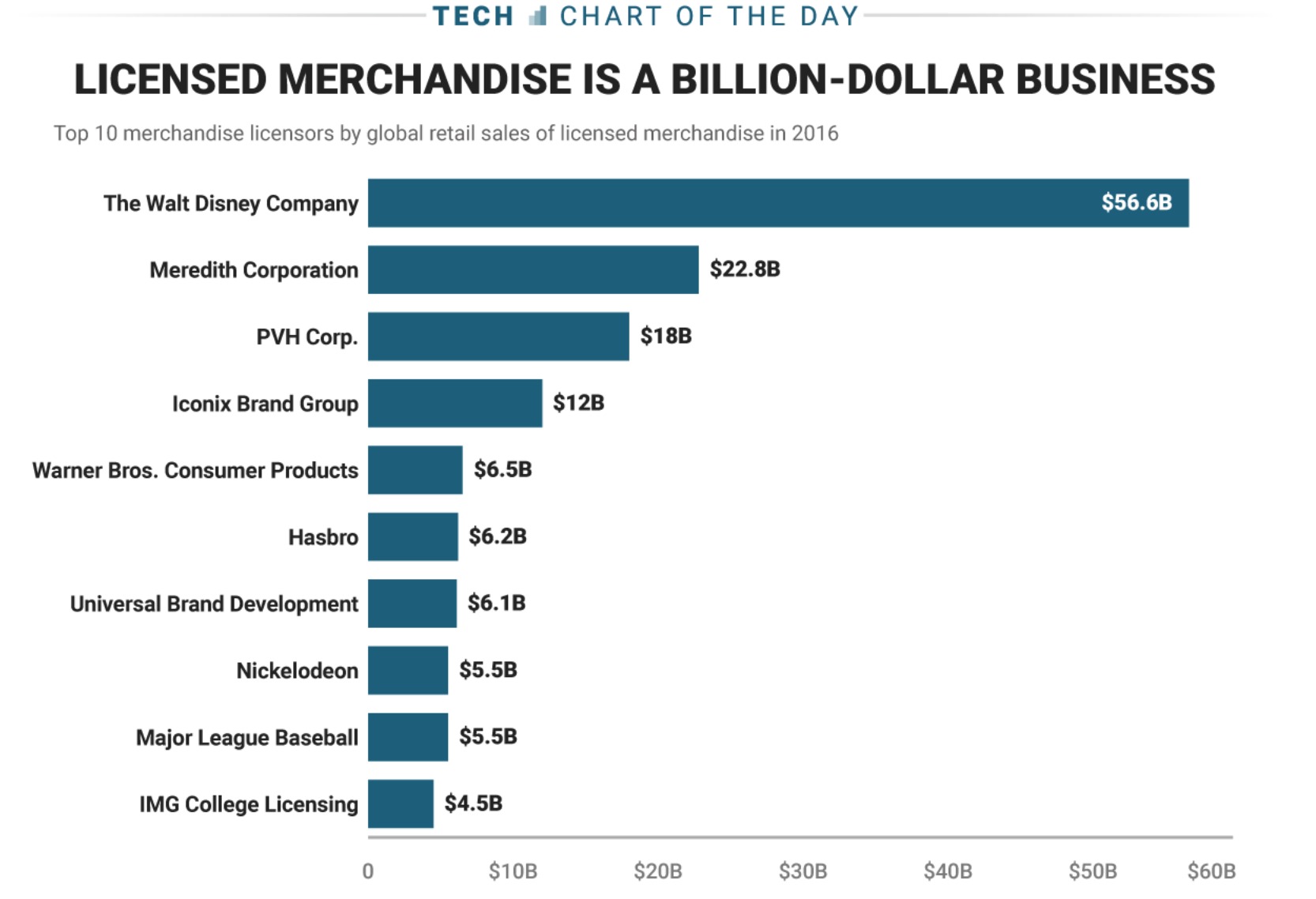 从整个行业来看,特许经营消费品能够为公司带来的收入非常可观。以迪士尼为例,其延伸出来的消费品部门已经发展成为是全世界最大的娱乐用品经营商,仅2016年一年销售额就超过了560亿美元。对于一直烧钱不止的Netflix来说,特许商品的生意是起码十亿级美元的诱惑。
