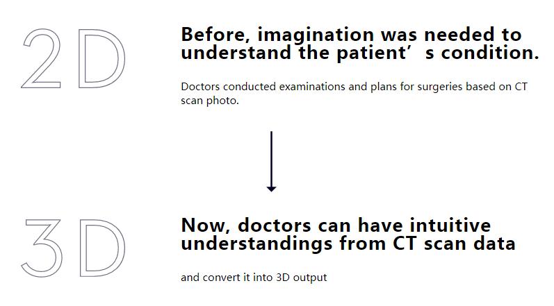 我们解决的一大问题,就是——人的身体是立体的,三维的,但是医生用的是二维成像显示。