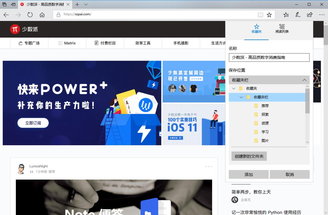 在每次 Windows 10 大版本更新中,微软都会为 Edge 浏览器增加许多新特性。在这次更新中,Edge 终于有了 F11 全屏模式,收藏夹系统也得到了全面改进。你现在可以编辑收藏网站的链接,在添加网站时的目录树也更加直观,便于选择。