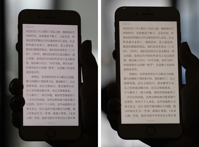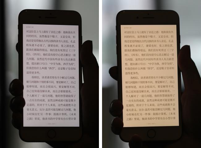 阅读体验更好,Plus 款 5.5 英寸屏幕的优点就体现出来了,如果你有在手机上看书的习惯,带有 True Tone 技术的屏幕绝对能给你带来不一样的阅读体验。