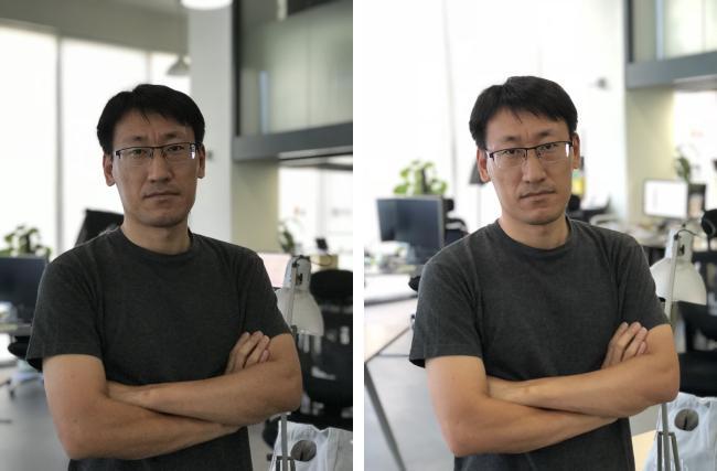 iPhone 8 使用了新的感光元件,进光量相比上一代提升了 83%,同时用 iPhone 7 Plus 和 iPhone 8 Plus 对比测试「人像模式」时,可以看到 iPhone 8 Plus 拍出的照片整个画面要比 iPhone 7 Plus 高不少。