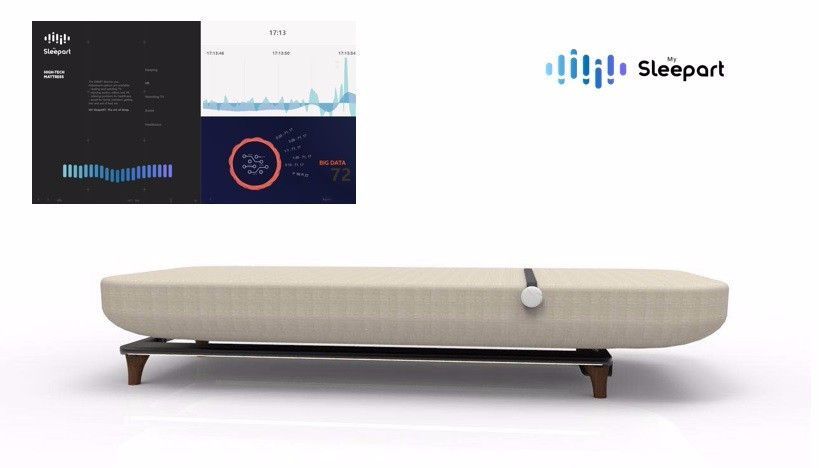 MySleepart智能床的基本原理是电动床上加传感器,获取人在心率、呼吸频率、翻身、鼾声等方面的体征数据以及卧室内温度、湿度、空气质量等环境数据,存储到云端,通过后台的人工智能算法即时分析用户的睡眠状态与睡眠质量,后台能基于这些数据对床进行自动干预,以延长用户的深度睡眠时间。
