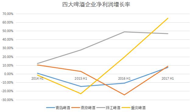 经36氪整理发现,2017年上半年,青岛、华润、燕京和珠江啤酒的营收和净利润同比均呈现正增长,其中珠江啤酒的营收增幅达到了11.59%,净利润也猛增46.7%。