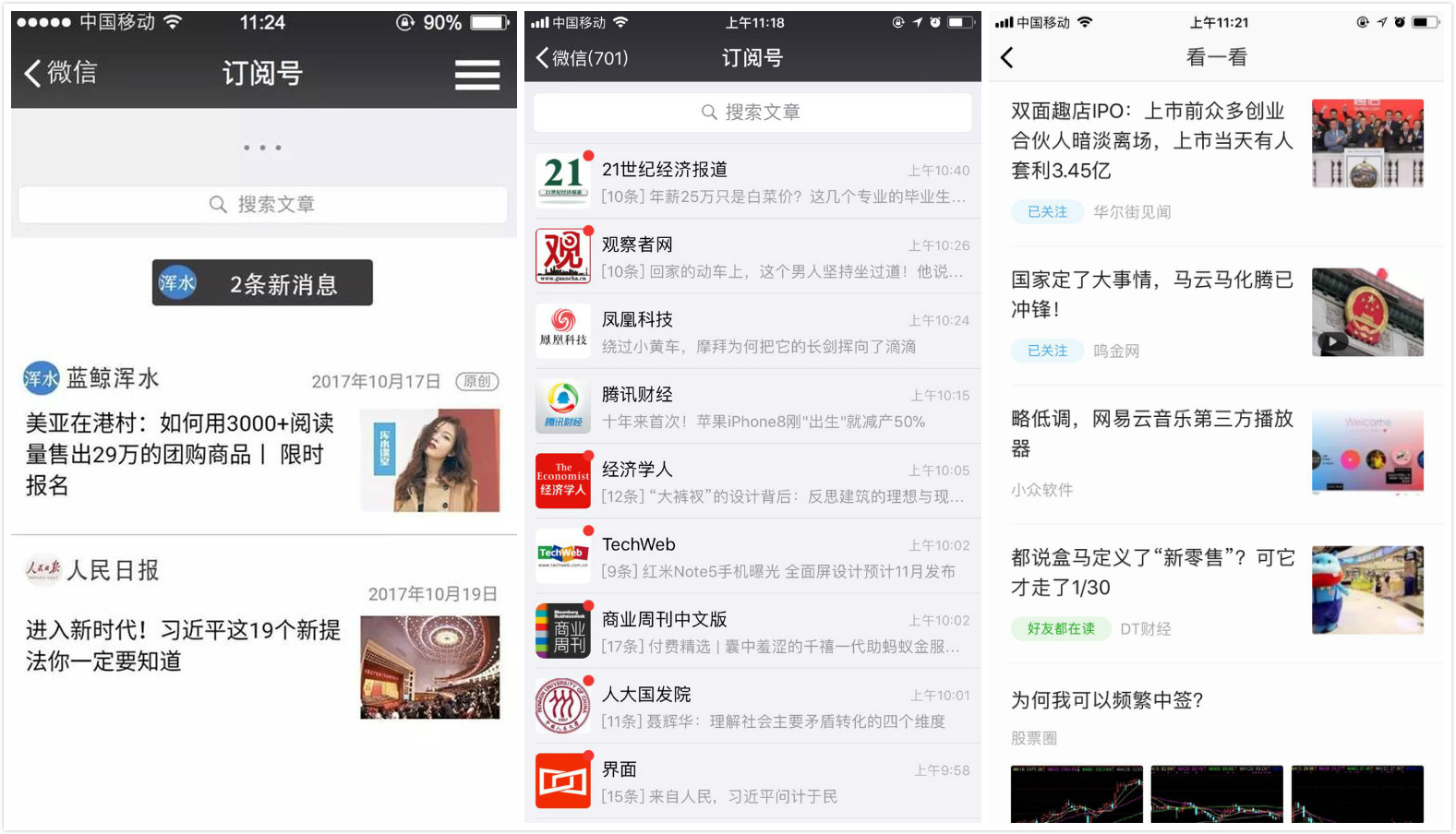 说回腾讯,早在2012年8月就推出了微信公众平台,今年5月又上线了看一看。除了微信,腾讯旗下的QQ也推出了QQ看点。如今,腾讯似乎又想把微信订阅号的呈现方式变成信息流形式的。但是,对微信订阅号做出这样的尝试,是好是坏大家的说法各异。