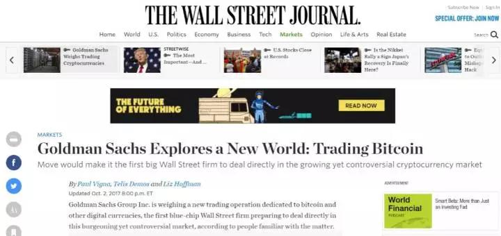 10月2日华尔街日报报道高盛正在筹备比特币交易平台。当媒体寻求确认时,高盛的公关部不予评论,但是明确表示高盛会尽力满足客户的需求,如果客户对交易比特币感兴趣,那高盛不排除搭建比特币交易平台的可能。