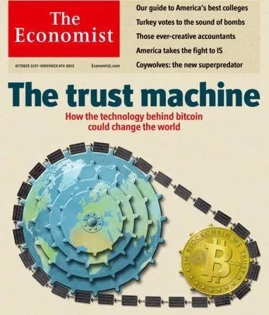 比特币的底层区块链技术,天生就是个信任生成器。《经济学人》杂志曾经用“信任机器 The trust machine”作为杂志封面来描述区块链技术。