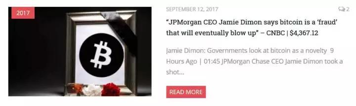 戴蒙并不是第一个错看比特币而被打脸的金融界大佬。国外有一个网站,叫比特币的讣告网。这个网站专门罗列在国际一流财经媒体上抨击比特币的金融名人, 而戴蒙排在第176个。