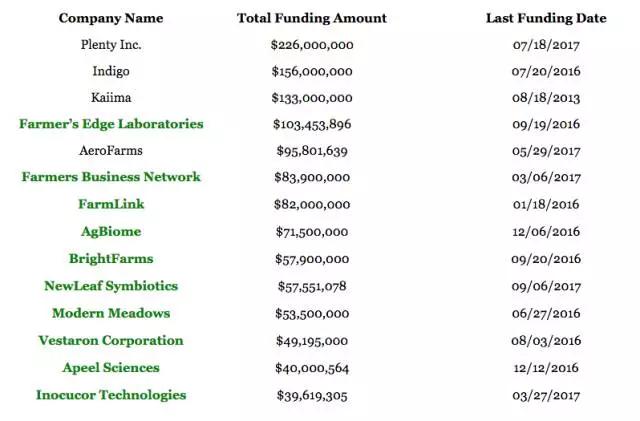 2015年,投资人向农业科技领域投资 46 亿美元,2016年超过 32 亿美元,仅2017年上半年,农业技术创业公司初期融资就已经接近 2015 年全年的总额,达到 44 亿美元,同比增长6%。