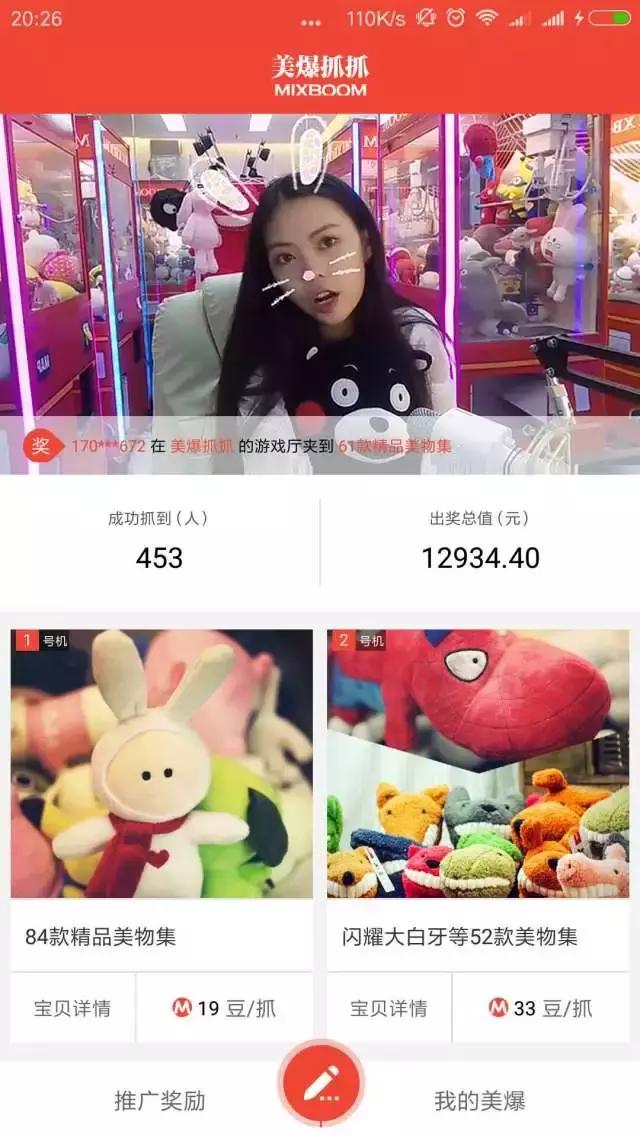 今年刚刚兴起的线上抓娃娃机则有趣的多,美爆抓抓的创始人袁俊:“机器是实时,用手机进行实时直播,而控制爪子上下左右则用的是声网,延迟很短,这个技术还是很贵的,按流量计费。抓娃娃本身就是一件比较碎片化的行为,一般不会有人专门去抓,使用场景和迷你KTV很相似,都是在商城中遇见,才会产生消费欲望的行为,而线上的抓娃娃机,则要更加的碎片化,玩起来没压力,通过微信支付宝充值,一次10块20的,也没什么感觉,加上这种全新的操作体验,有个小姑娘一天就冲了几百块,劝她少充点慢慢玩,她还说没关系,我觉得很有趣。”