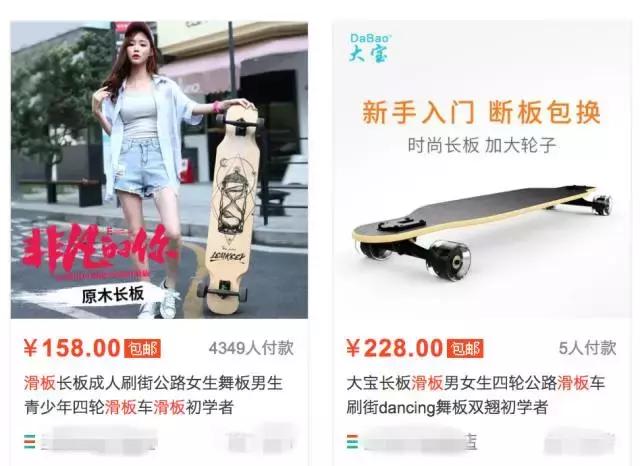 比如输入“滑板”二字,会发现大多数商品会把滑板、长板、刷街、舞板甚至滑板车等等相关不相关的关键词都加入了标题中。这已经是今天经过多次修正后的搜索效果,可以想象一下,几年前的电商搜索结果会是什么样子:用户想购买滑板,结果搜索结果里有一堆滑板车、滑板鞋、滑板袜……