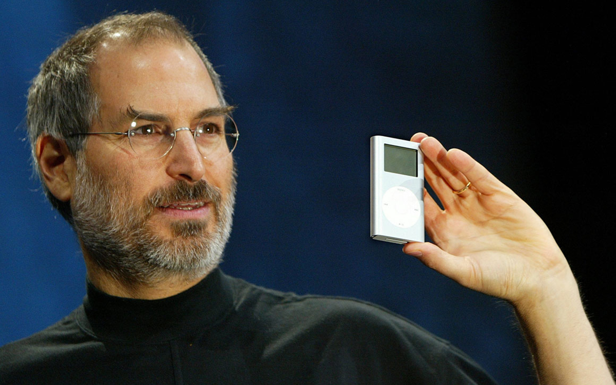 2001 年 10 月 23 日,在苹果库比蒂诺总部的大礼堂里,乔布斯拿着扑克盒大小的 iPod,撬开了数字音乐世界的大门: