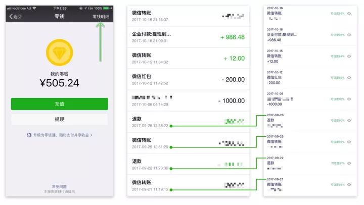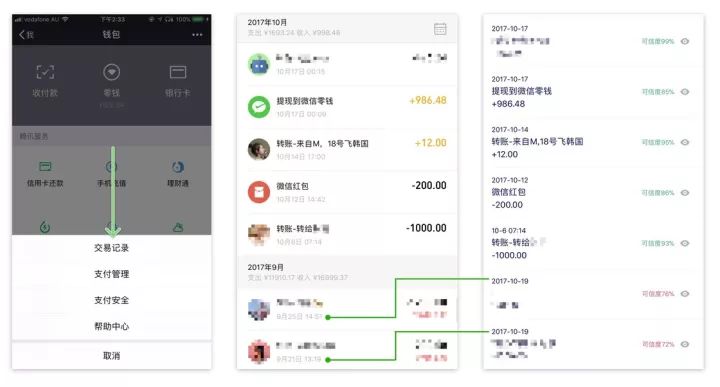在微信中你可以从两个地方获取交易记录,一个是微信钱包中的「交易记录」,另一个是零钱中的「零钱明细」。神奇账本在识别前者交易截图时,只能正确地识别当月的日期,而对于之前交易记录,它全部识别成了当天的日期。
