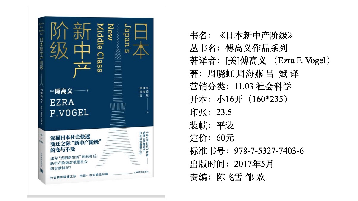 二战后日本经济的迅速发展,大批职员进入大型企业与政府机构并得到终身职位,他们取代了老中产阶层,带动了家庭、经济与文化的变革。工薪族成为他人向往的“光明新生活”的代表;工薪族家庭与政府、社区的关系经历重塑,虽缺乏绝对的价值体系,但却有基本的共识;传统的家族理念式微,新观念影响了家庭内部的分工、权威和育儿。新中产阶层不仅是社会巨变中持续不辍的稳定力量,更建构了延续迄今的日本社会运作基本模式。