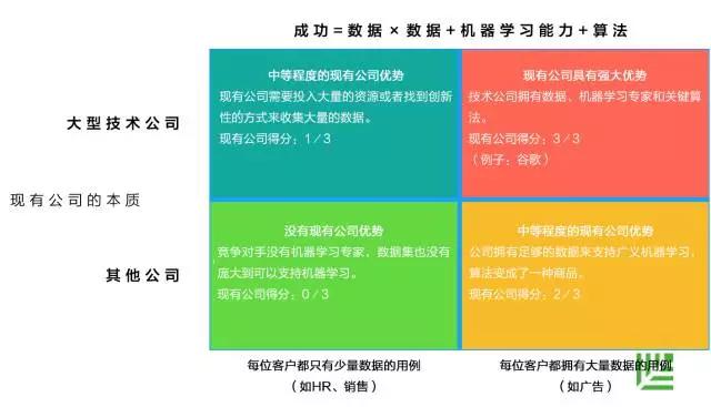这样计算的直接结果就是,当市场里数据稀少时,初创公司有机会凭借关键的机器学习能力和创新性的算法成为市场赢家。