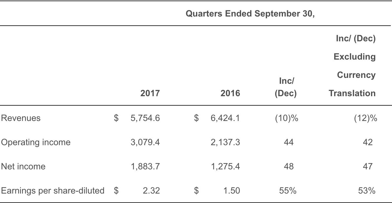 北京时间24日晚间,麦当劳发布Q3财报。在截至9月30日的三个月内,受出售中国大陆和香港特许经营权的影响,从本季度开始,中国大陆和香港门店的营业收入将不再计入到麦当劳的整体营收中,因此公司整体营收下降10%至57.5亿美元。具体来看,自营门店的收入下降了23%,特许经营门店为麦当劳带来的收入增加了10%。