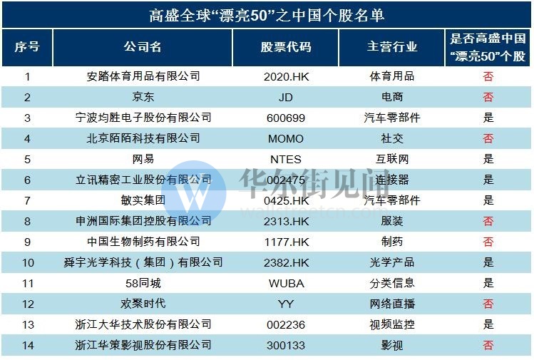 这次高盛选出的全球“漂亮50”和中国“漂亮50”有所重合。