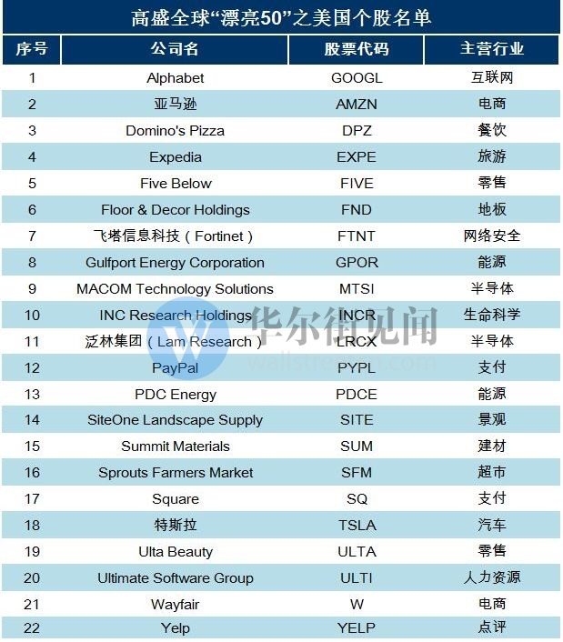 Facebook、中国BAT均落选,高盛全球“漂亮50”有哪些潜力股?
