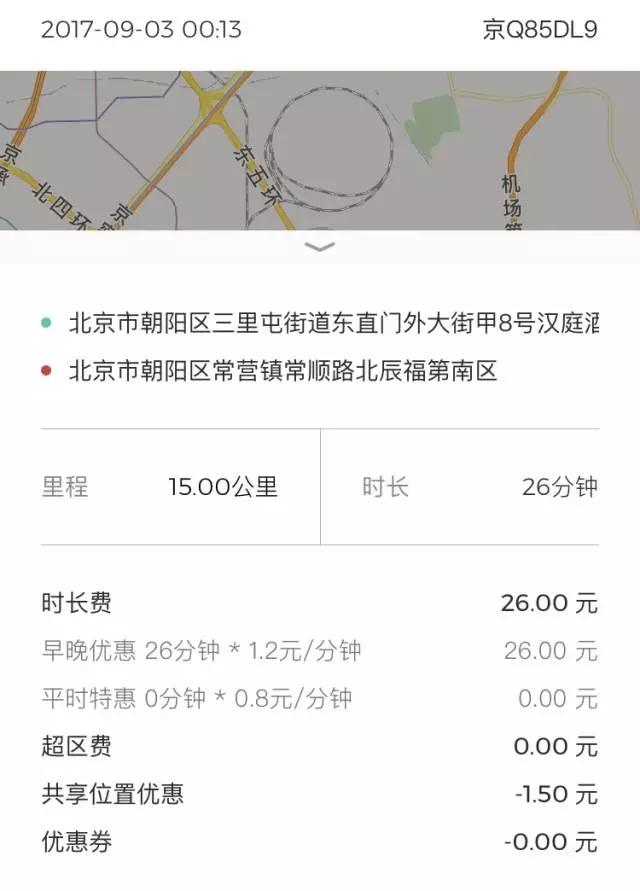 现在便宜到什么程度?只举个简单的场景:我在晚上 12 点左右用车,用 30 分钟时间行驶 15 公里左右到 EZZY 运营区域的最东边,单程花费可以控制在 20 元以内,而相同场景,打车则需要 55 元左右,使用途歌也需要花费 60 元左右(包括还车附加费)。
