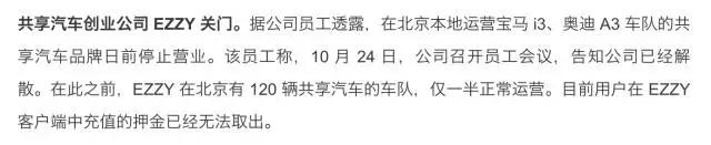 我用了两年的共享用车平台倒闭了,它叫EZZY