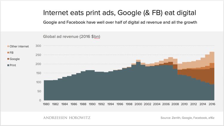 互联网吞噬平媒广告,Google(及FB)吞噬数字广告