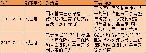 四月初,人社部再将44个品种纳入2017年国家基本医疗保险、工伤保险和生育保险药品目录谈判范围。最终有36个品种成功入围,8个出局。