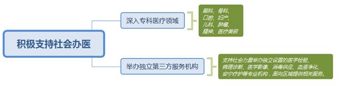 今年5月颁布的《关于支持社会力量提供多层次多样化医疗服务的意见》进一步明晰了目标,要求到2020年,社会力量办医能力明显增强,医疗技术、服务品质、品牌美誉度显著提高,专业人才、健康保险、医药技术等支撑进一步夯实,行业发展环境全面优化。打造一大批有较强服务竞争力的社会办医疗机构,形成若干具有影响力的特色健康服务产业集聚区,服务供给基本满足国内需求,逐步形成多层次多样化医疗服务新格局。
