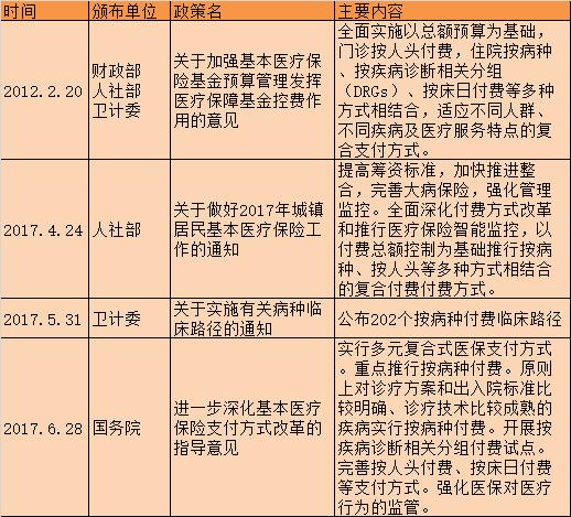 影响最大的是国务院六月份发布的《关于进一步深化基本医疗保险支付方式改革的指导意见》。根据该意见,2017年起,将进一步加强医保基金预算管理,全面推行以按病种付费为主的多元复合式医保支付方式。