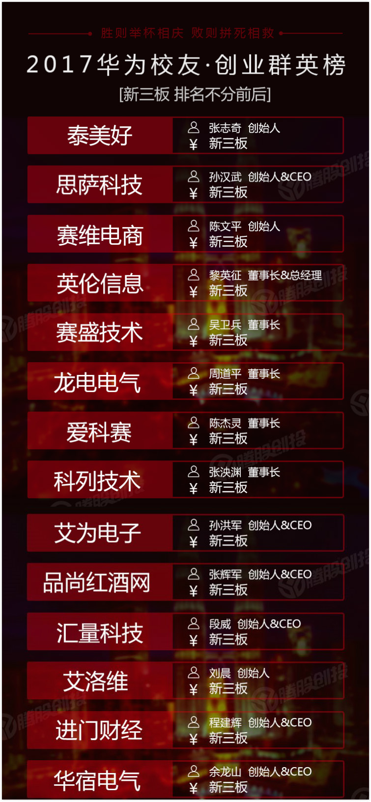 “华为系创业英雄榜”是整个华为创业校友的共同荣誉,希望越来越多的华友能加入、支持并帮助我们,将这份代表华为创业校友荣誉的榜单持续的完善下去。