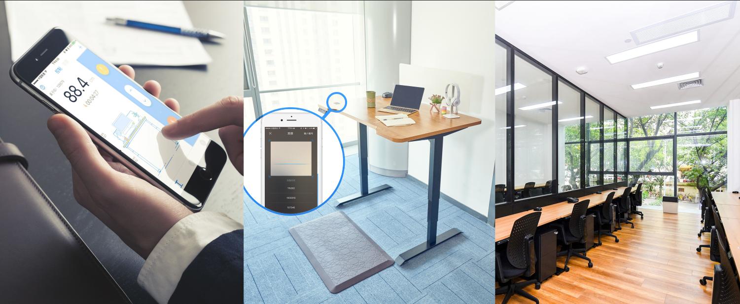 智能升降桌的传统厂商侧重于工业设计和品牌,9AM 则希望先建立技术壁垒。可通过与智能升降桌配套的APP,扫描桌上的二维码,连接需要控制的办公桌,通过上下划动就控制办公桌升降,完成站/坐办公姿势的切换。户设置站/坐后,APP会推送或以桌面震动的方式提醒用户切换姿态,防止久坐或久站带来的潜在健康问题,最终沉淀下来的数据可以用可视化的方式呈现出来,让员工回顾历史并对健康状况作出改进。