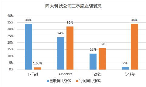 如此惊人而一致的表现,源于几大科技巨头突出的业绩。此前,亚马逊、微软、Alphabet和英特尔都公布了靓丽的财报,均超出市场预期。