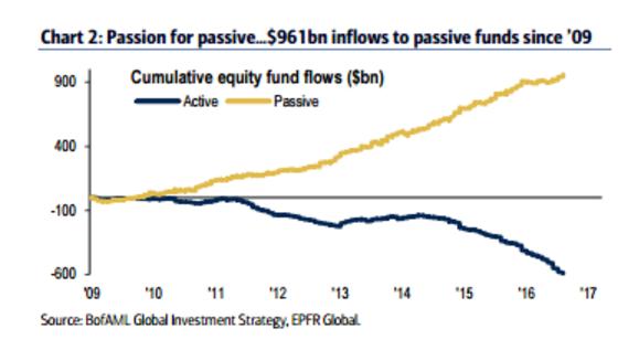 基于这些判断,不悲认为未来财富管理市场有很大的增长空间,但金融机构的财富管理业务门槛很高,如果金融机构想覆盖上面提到的新一代财富人群,必须想办法降低自身服务成本、提高效率;加上近几年的趋势是,在费率上更占优势的被动投资正在稳步蚕食主动投资的市场份额,如在2000年成立解决方案公司并开发出阿拉丁风险管理系统的贝莱德,这几年就大受追捧。