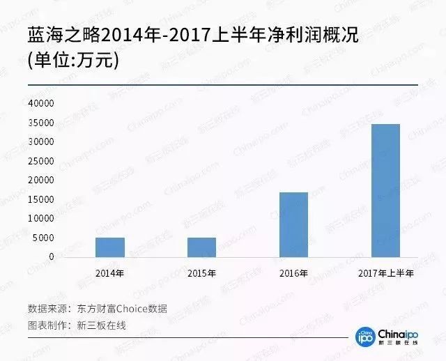 2015年蓝海之略净利润为5068.06万元。到了2016年,这一数字已翻了三倍,跳升至1.68亿元。2017年上半年刚过,蓝海之略又挣了3.44亿元,较去年同期的1344.02万元增长逾2400%!