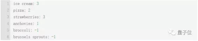 正例被标记为“美味”,比如巧克力冰淇淋、披萨、草莓等。负例被标记为“恶心”,比如凤尾鱼、花椰菜和球芽甘蓝。