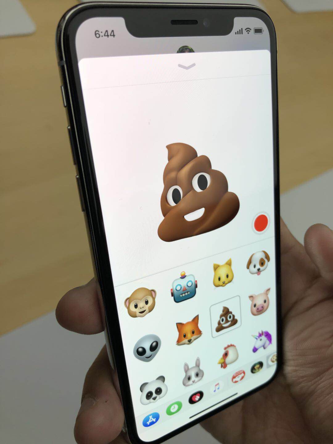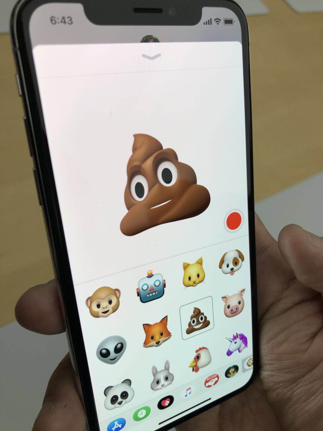 严肃版“便便”VS开心版“便便”。iPhone X发生的另一个有趣的变化是emoji升级为了animoji,手机前置摄像头可以不仅可以识别用户,还能捕捉用户表情,将emoji变为动态。