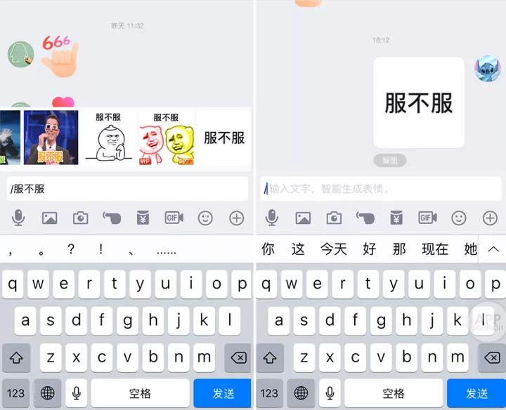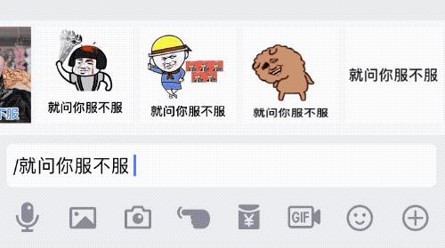 只要在 QQ 对话框里,输入斜杠加文字,就能动态生成斗图表情。生成的表情包再配合你输入的文字,可以说每一个表情包都是定制的。