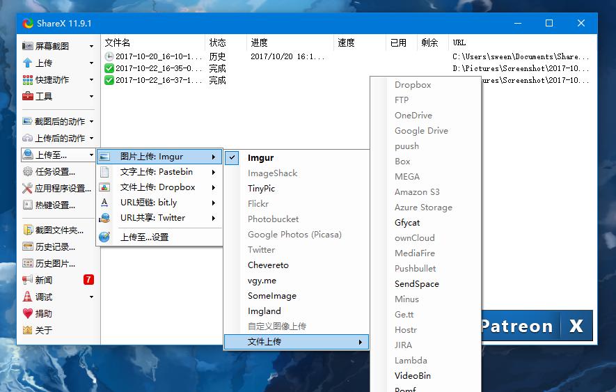当然,它主打的后续操作也不含糊。除了极其丰富的图片标记工具外,你还可以将图片或其它文件上传至数十种内置分享服务,还可以通过 POST/GET 请求等添加自定义文件上传服务。