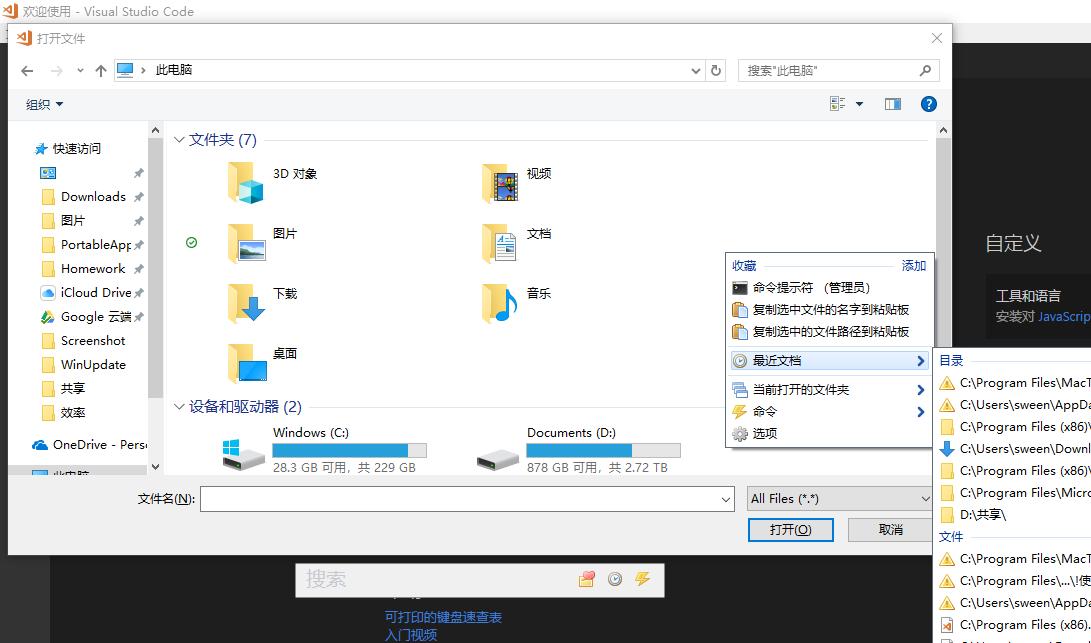 Listary 另一个绝技是它对 Windows 文件选择对话框的增强,当你需要打开或保存一个文件时,Listary 的操作框会自动浮现在弹出窗口的下方,让你可以快速搜索指定路径。如果当前有其它打开的资源管理器窗口,你还可以通过 Listary 快速切换到该目录,十分方便。