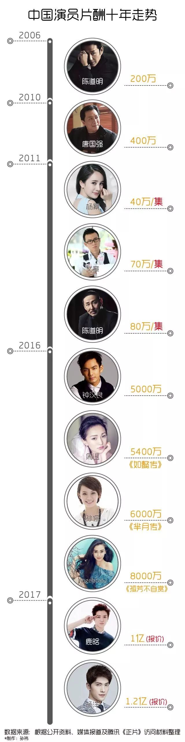 而当时那样令人不满的价格放在今天,只能请到二三线演员。前段时间年轻演员盛一伦被爆出在电视剧《将军在上》的片酬达到了3300万(单集83万)。华策影视(300133.SZ)财报数据则显示,电视剧《夏至未至》中陈学冬的片酬达到4200万(单集88万)。