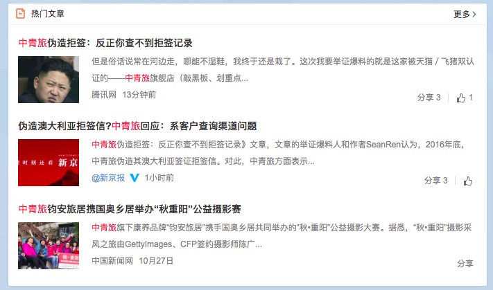 今日,“澳洲情报局”个人微信公众号发布《中青旅伪造拒签:反正你查不到拒签记录》文章,文章的举证爆料人和作者Sean Ren认为,2016年底,中青旅伪造其澳大利亚签证拒签信。