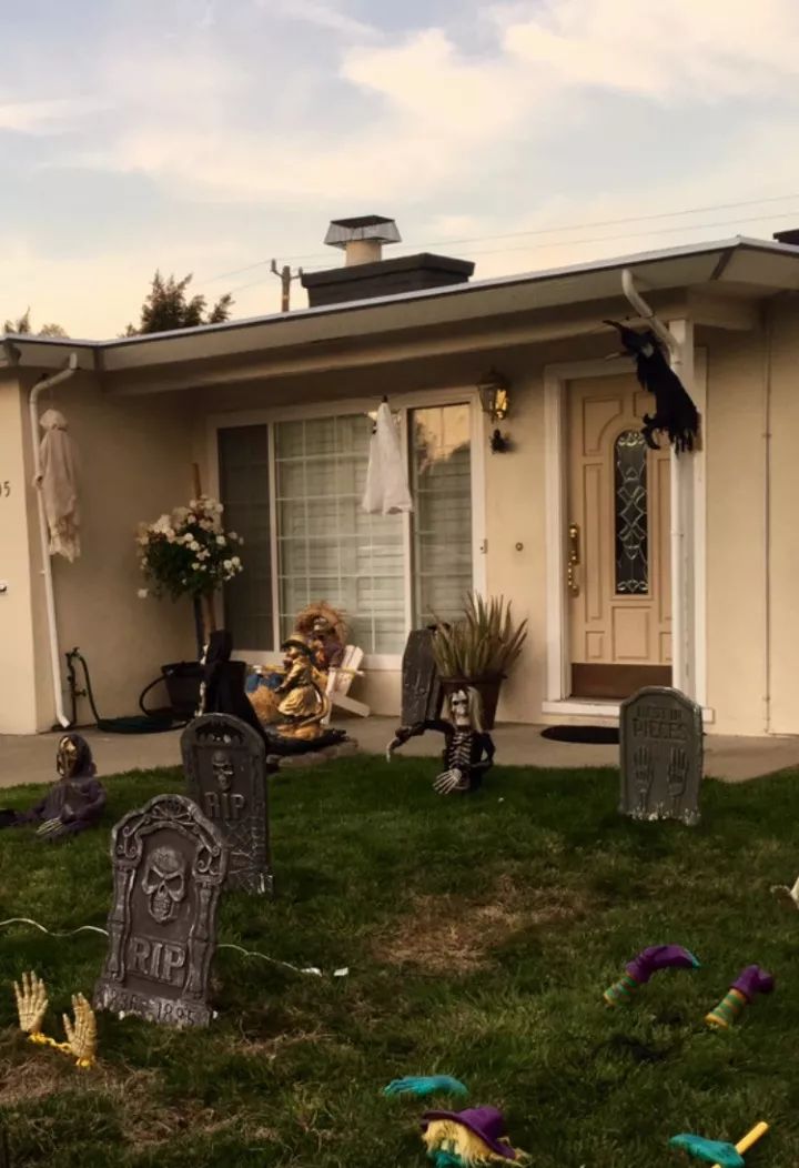 要小探说,你也不用在 Airbnb 上订个遥远的欧洲鬼屋体验万圣节气氛了。硅谷人民对万圣节的热情,你饭后在屋旁散个步就能体验。难怪推特上有人说:硅谷真是神奇的地方,这里的房价动辄几百万美金,这里修建草坪的费用动辄大几千美金,然而每年万圣节这天,这些坐拥豪宅的人却用破布和棉絮装饰房子…